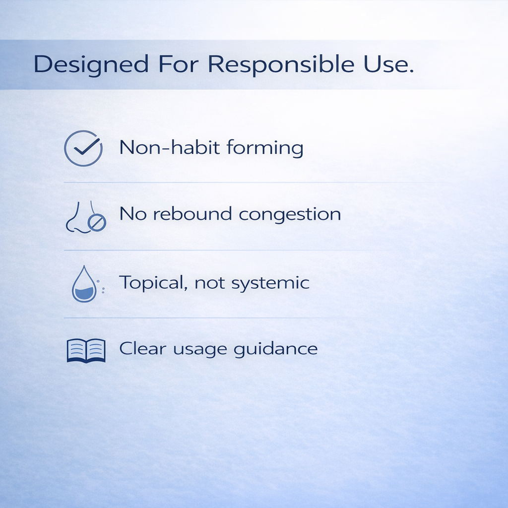 A pharmaceutical-grade purified water base ensures a gentle, isotonic delivery system that won't dry or irritate nasal passages — safe and comfortable enough for everyday use.